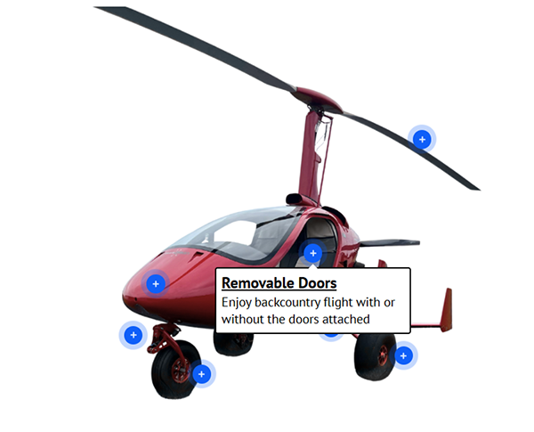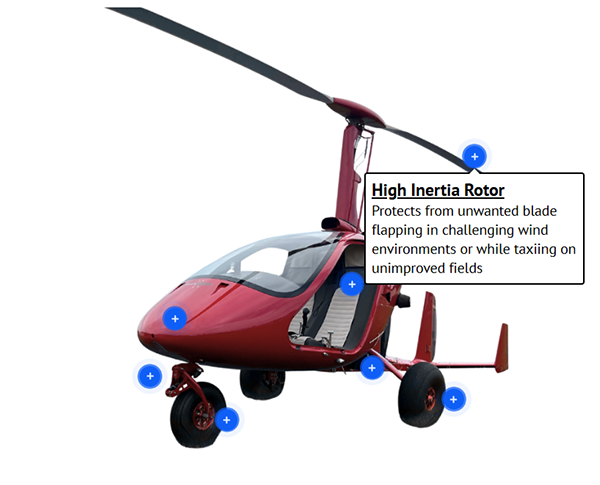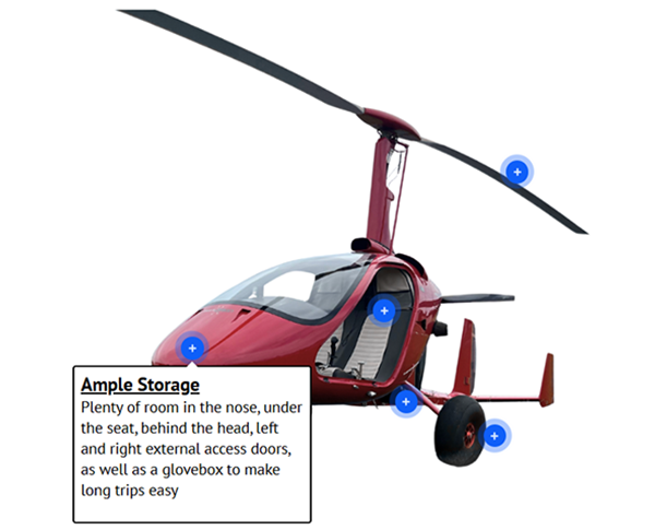 The open air feel of the M16 but without rear controls to get in the way of your passenger; add baggage space and you have the perfect traveling gyroplane.